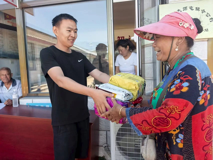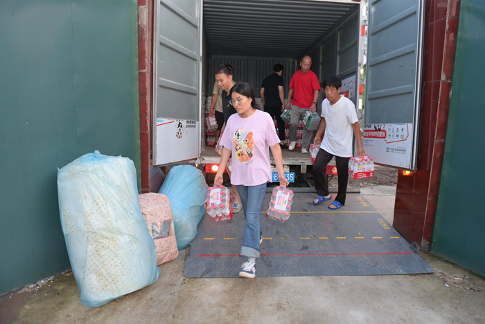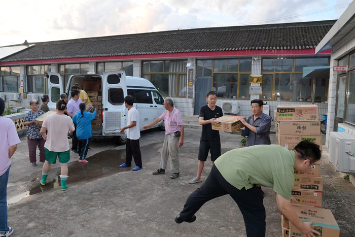 7月30日上午,李東又馬不(bu)停蹄地組織人員將北京化工集團馳援的物資分(fen)發(fa)到(dao)村民手中。
