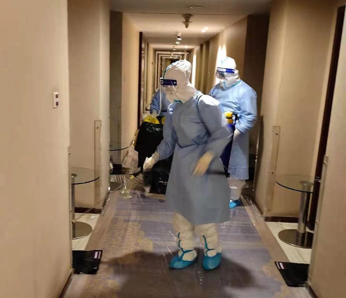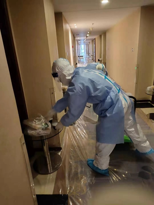 從收到通知到隔離(li)人(ren)員全部(bu)返家(jia)的(de)(de)(de)23天里(li),共產(chan)黨員、酒店(dian)負(fu)責人(ren)白江(jiang)一(yi)直在酒店(dian) “坐陣指揮”,最快速(su)解決面臨(lin)的(de)(de)(de)各種問題。7名隔離(li)區消(xiao)殺(sha)組成員每日24時至凌晨3時進行垃圾(ji)收撿,每日晚餐后(hou)還要對公共區域進行全方位消(xiao)殺(sha),對每天產(chan)生的(de)(de)(de)800多(duo)公斤醫(yi)療(liao)垃圾(ji)廢物(wu),收撿后(hou)運輸到專(zhuan)用垃圾(ji)存放(fang)處(chu),進行全方位消(xiao)殺(sha)。