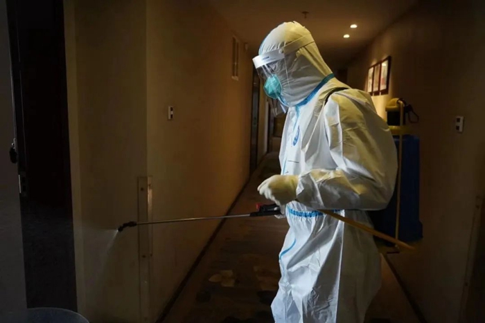 每天深夜,當賓客們沉沉睡去,閉環服務人員還要進行垃圾消毒清運工作。眾所周知,垃圾是病毒最容易傳播的媒介,為防止疫情傳播,閉環人員要對一袋袋垃圾進行全面消殺,然后再手動一袋袋地將垃圾送至目標場所,垃圾的異味常常令服務人員一陣陣作嘔,但大家沒有一句怨言。