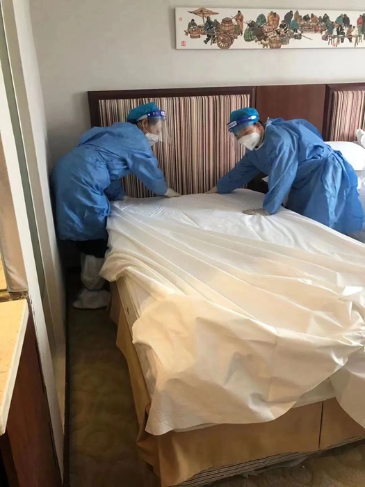 而今,又一陣戰鼓擂響。在這春風徐來的三月,華騰美居酒店征塵未洗又接到新的任務,要承擔起屬地政府要求的醫學觀察點保障任務。看,我們的華騰美居人再次整肅妝容,精神抖擻地投入到疫情防控新的戰場之中……
