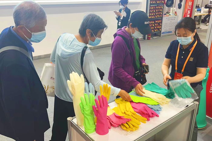 4月29日,北京化(hua)工集(ji)團秉承“百姓衣(yi)食住行,化(hua)工情系其(qi)中(zhong)”的(de)理念,攜旗下華(hua)騰(teng)橡塑(su)公司亮相(xiang)“直賣”現場。華(hua)騰(teng)橡塑(su)更是將市場受歡迎的(de)軟丁腈(jing)手套,彩色(se)丁腈(jing)家用手套,雪蓮食品級家用白(bai)丁腈(jing)手套等多(duo)款優(you)質產(chan)品悉數帶到展會。