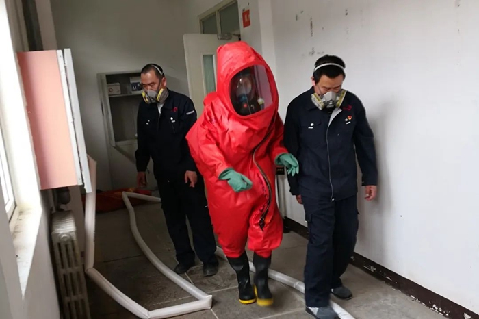 在理論知識培訓(xun)中,集團安(an)全環保部相關人員(yuan)圍繞人民防空(kong)的基本(ben)概念(nian)、性質、地位、作(zuo)用(yong)和(he)工作(zuo)任務進行(xing)了系統(tong)深(shen)入(ru)的講(jiang)解。在應急(ji)裝(zhuang)備(bei)講(jiang)解示范和(he)實操中,由(you)安(an)全應急(ji)專業人員(yuan)細致講(jiang)解了正壓式空(kong)氣呼(hu)吸器(qi)、輕(重)型化(hua)學品(pin)防護服、洗消裝(zhuang)備(bei)、過濾式防毒面具等應急(ji)裝(zhuang)備(bei)的使(shi)用(yong)場景、注意事項。