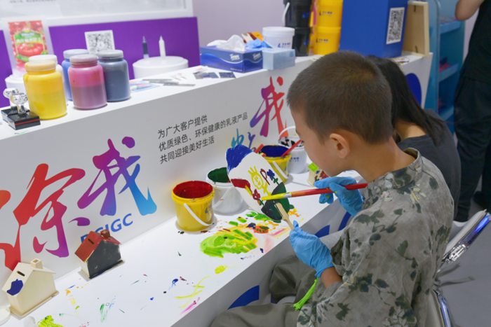 在“涂(tu)我、粘我”展(zhan)(zhan)區,大朋友(you)、小朋友(you)們紛(fen)紛(fen)拿起小扇子(zi)、小木制房子(zi),用不(bu)同(tong)的(de)(de)涂(tu)料(liao)在上(shang)面作畫(hua)、上(shang)顏料(liao);在干(gan)箱手(shou)套(tao)(tao)互動(dong)區,觀(guan)展(zhan)(zhan)者(zhe)(zhe)興致勃(bo)勃(bo)地套(tao)(tao)上(shang)干(gan)箱手(shou)套(tao)(tao),模(mo)擬化學試(shi)驗操作,將試(shi)劑(ji)滴入不(bu)同(tong)化學液體中(zhong),觀(guan)察其(qi)中(zhong)的(de)(de)變化;在防(fang)靜電(dian)手(shou)套(tao)(tao)互動(dong)區,觀(guan)眾們紛(fen)紛(fen)體驗不(bu)戴手(shou)套(tao)(tao)的(de)(de)“麻酥”感和戴上(shang)手(shou)套(tao)(tao)后的(de)(de)安(an)全感。3個互動(dong)區使觀(guan)展(zhan)(zhan)者(zhe)(zhe)在動(dong)手(shou)參(can)與中(zhong)了(le)解產品的(de)(de)特性,對(dui)化學讓生活更美好有了(le)切身(shen)的(de)(de)感受。