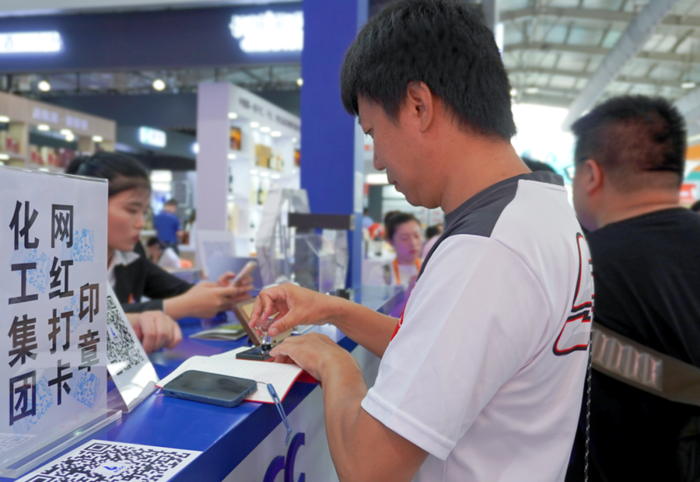網紅打卡印章,是此次參展的又(you)一(yi)亮點(dian),集(ji)團為此專門(men)制作了有集(ji)團名稱樓宇的印章。“4號(hao)館,北(bei)化集(ji)團,3免(3個印章、免費)”的服貿會(hui)攻略已在“小紅書”上(shang)傳(chuan)開(kai),人們紛至沓來,在關(guan)注集(ji)團微信(xin)公眾號(hao)后,將“北(bei)京化工(gong)(gong)集(ji)團”印在自己的本上(shang),讓北(bei)京化工(gong)(gong)在潛(qian)移默化中傳(chuan)播(bo)。